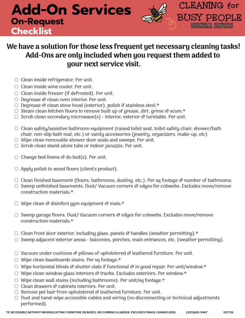 *Spring (Summer, Fall & Winter) Cleaning. It’s time to get rid of the dust, grime, cobwebs, and allergens (ugh!) that have been breeding inside your home for weeks or months. Reset your entire space until it sparkles like new again. We recommend homes to be professionally Deep Clean at least once every 3 months.